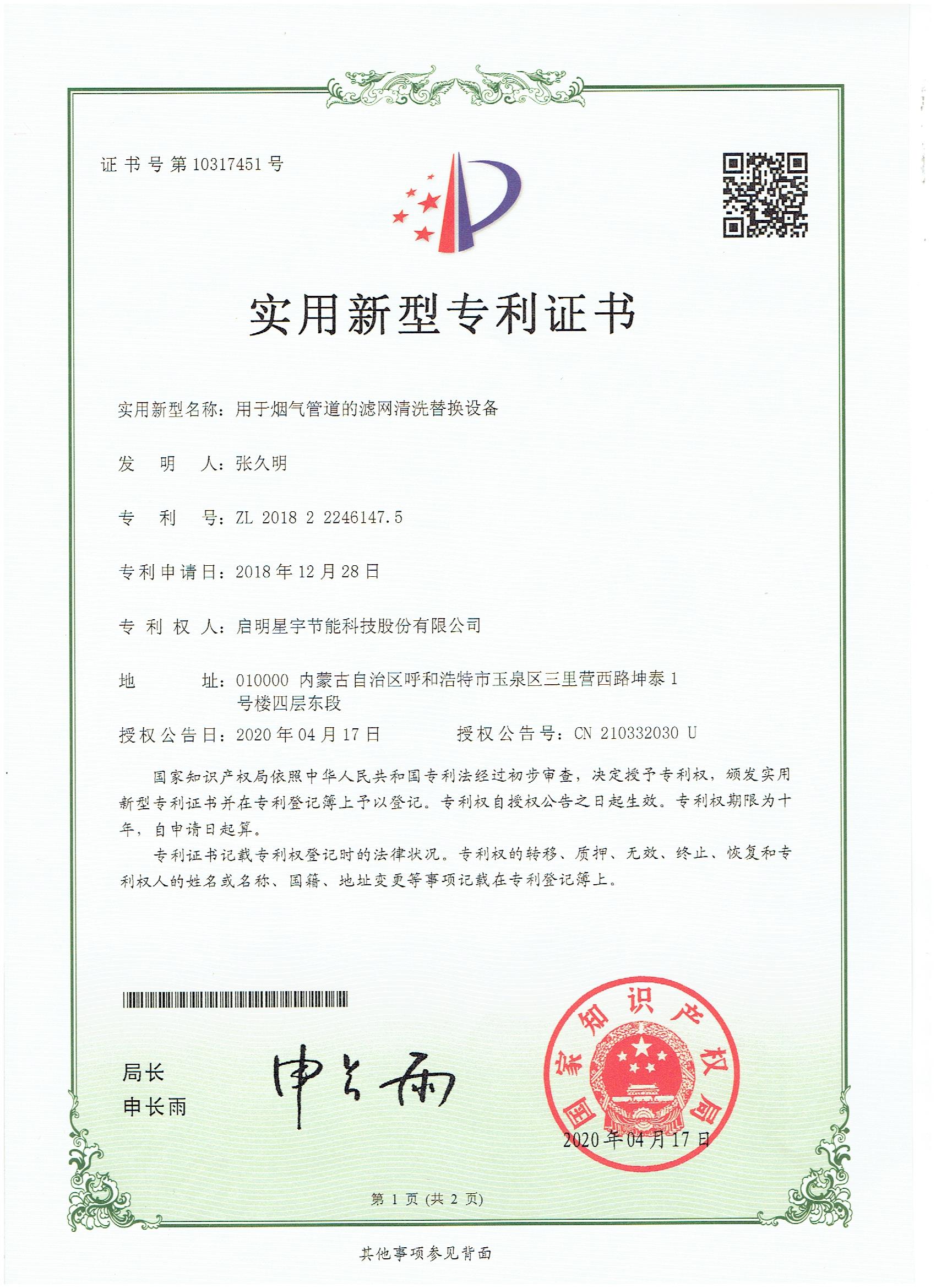 用于煙氣管道的濾網清洗替換設備實用新型專利