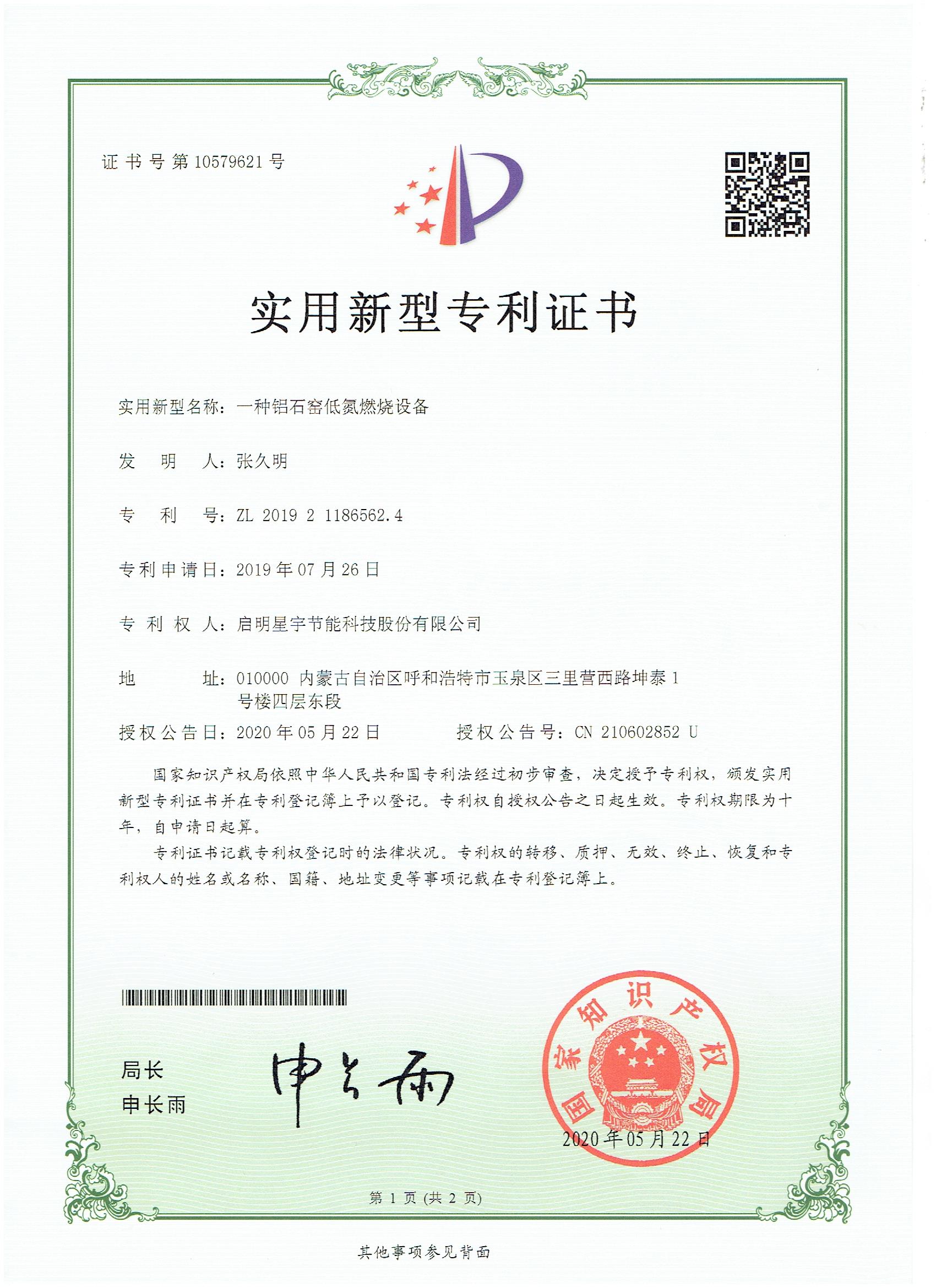 一種鋁石窯低氮燃燒設備實用新型專利