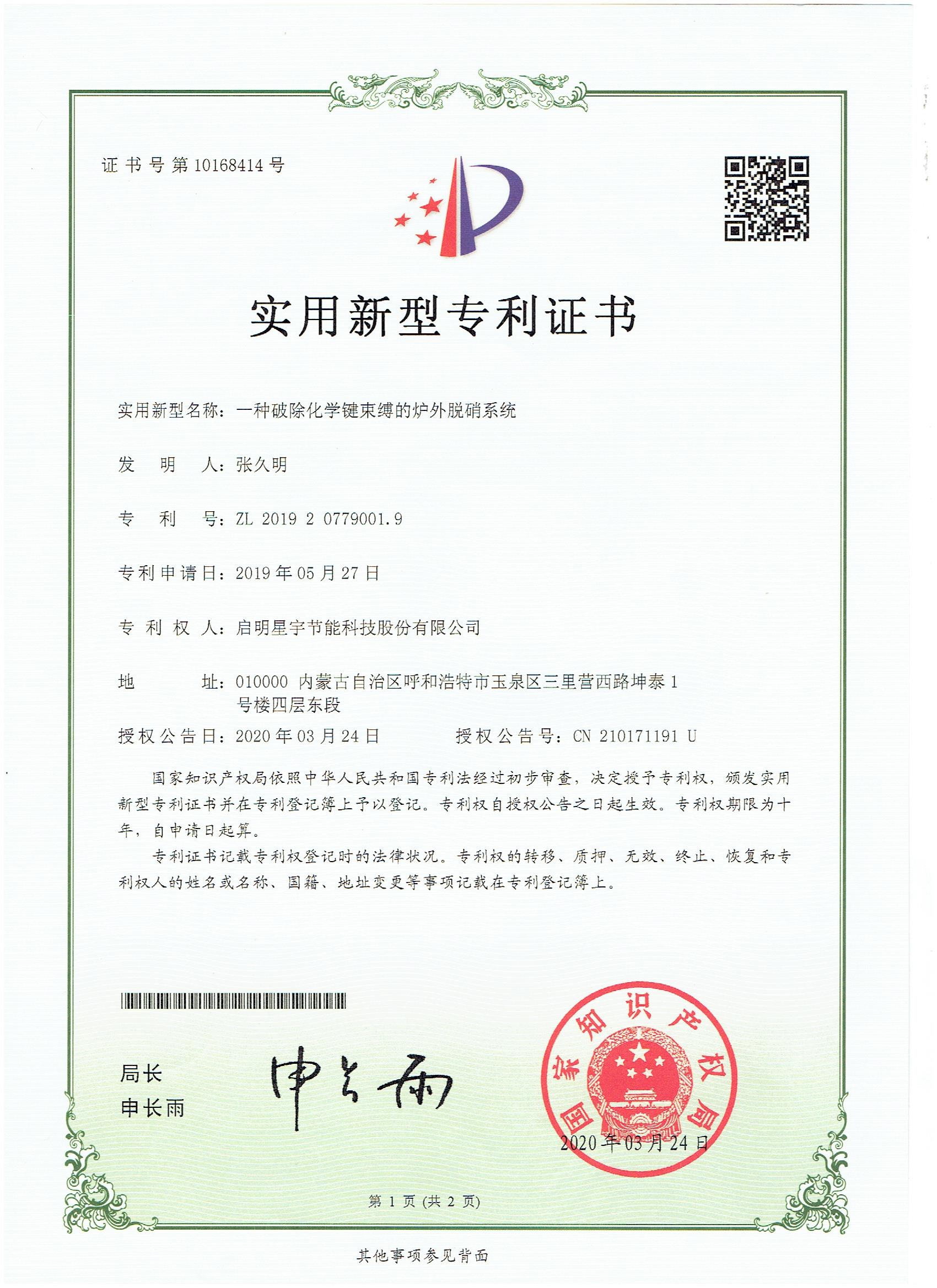 一種破除化學鍵束縛的爐外脫硝系統實用新型專利