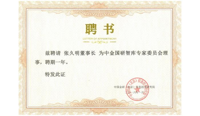 中國研智庫專家委員會理事聘書