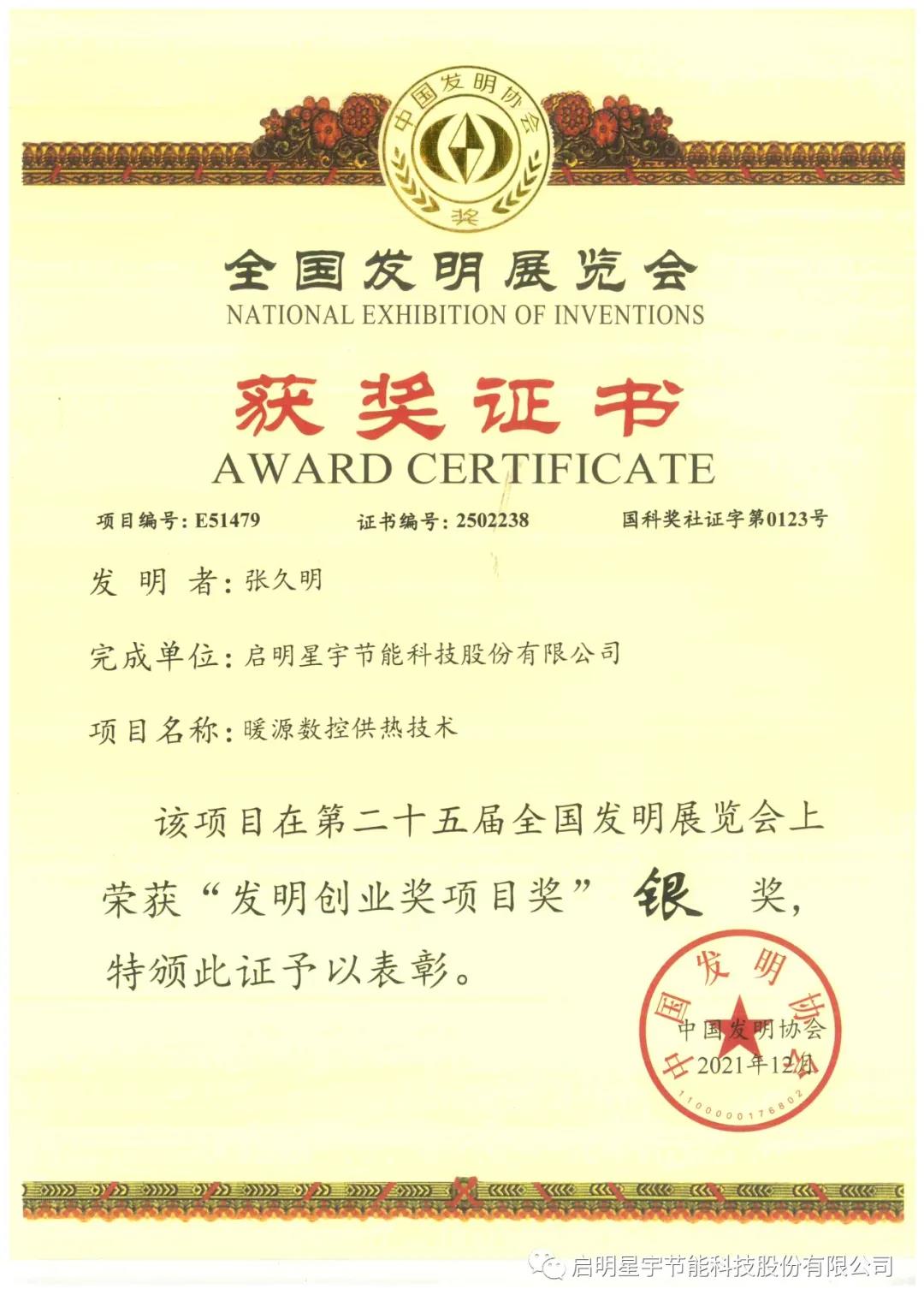 啟明星宇清潔供熱產品:大數據云計算行業節能服務平臺和五暖牌脫硫除塵脫硝趨零排放設備,獲得“發明創業項目獎”金、銀雙獎!