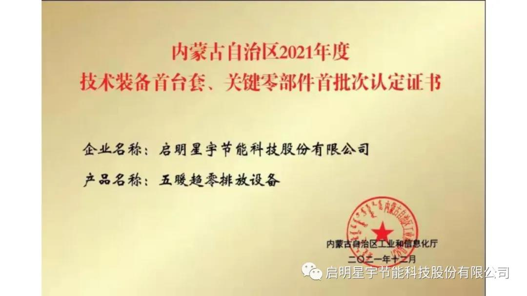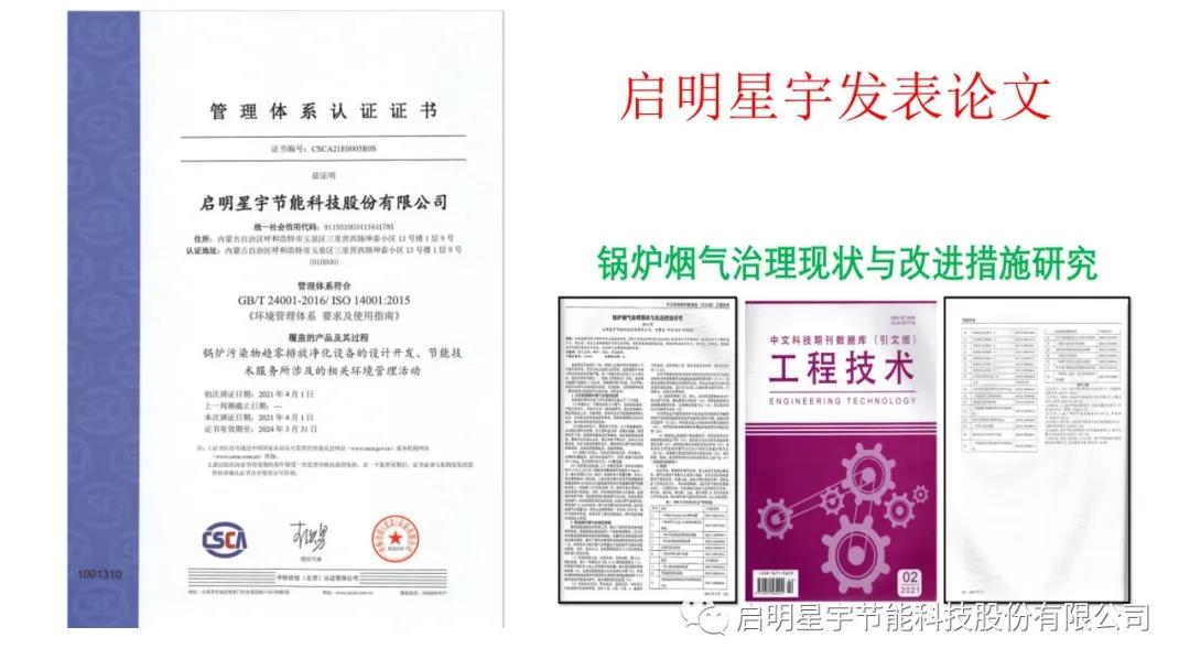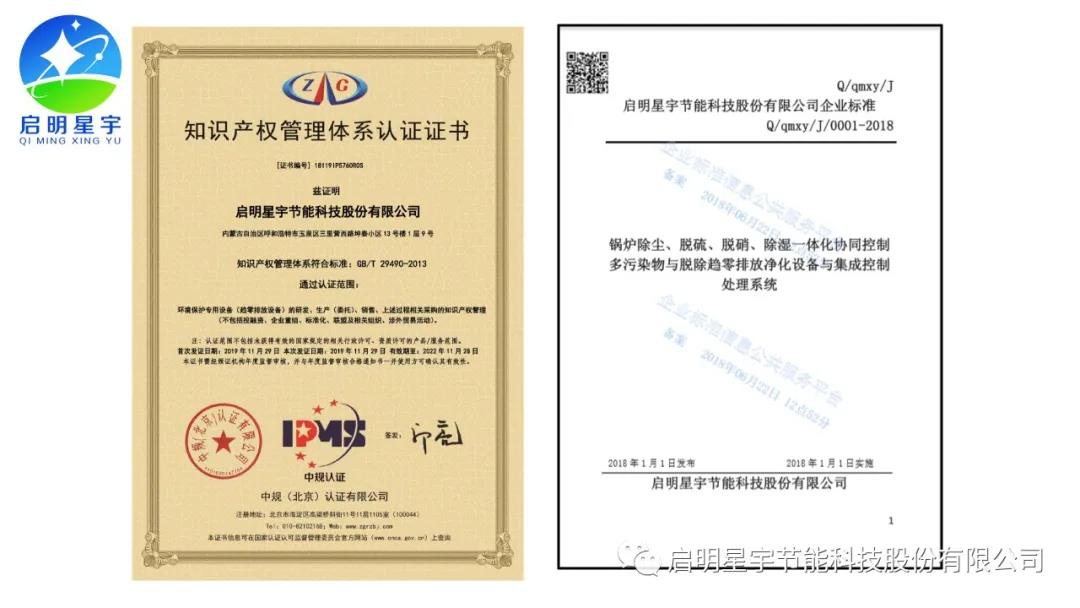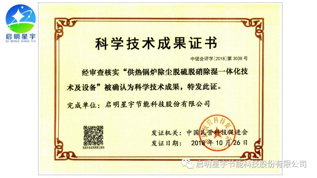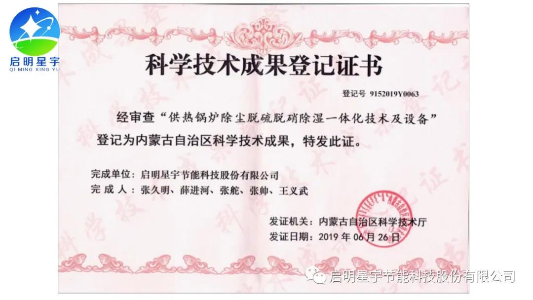 啟明星宇超低排放專利證書