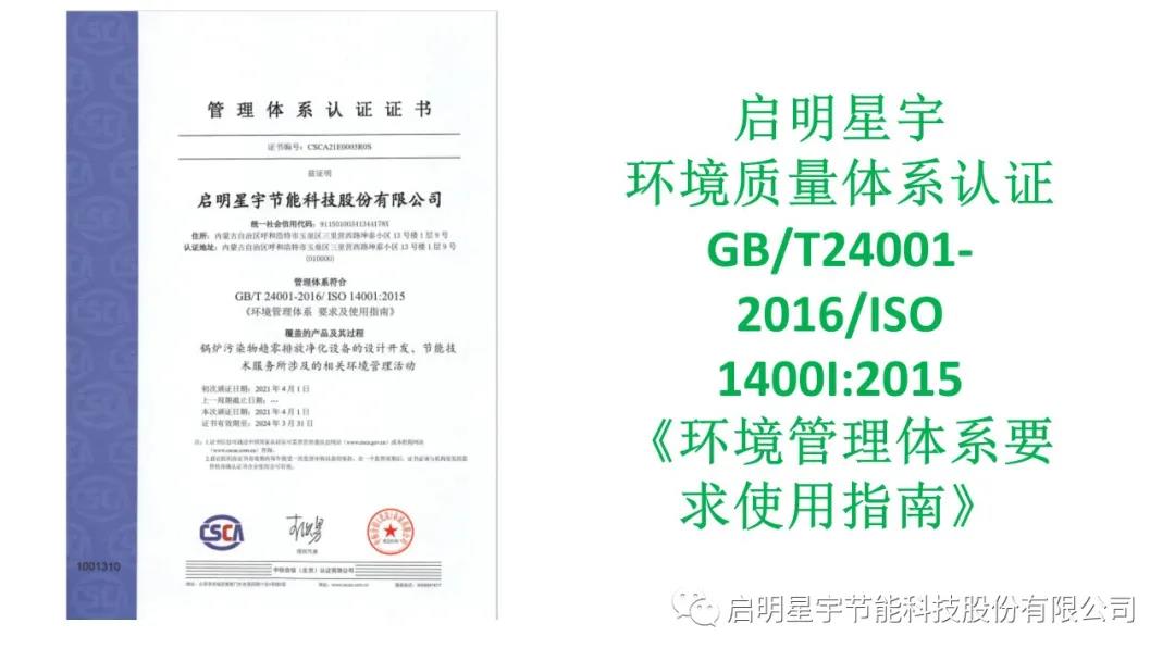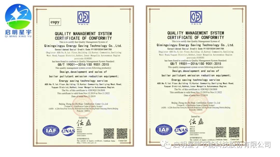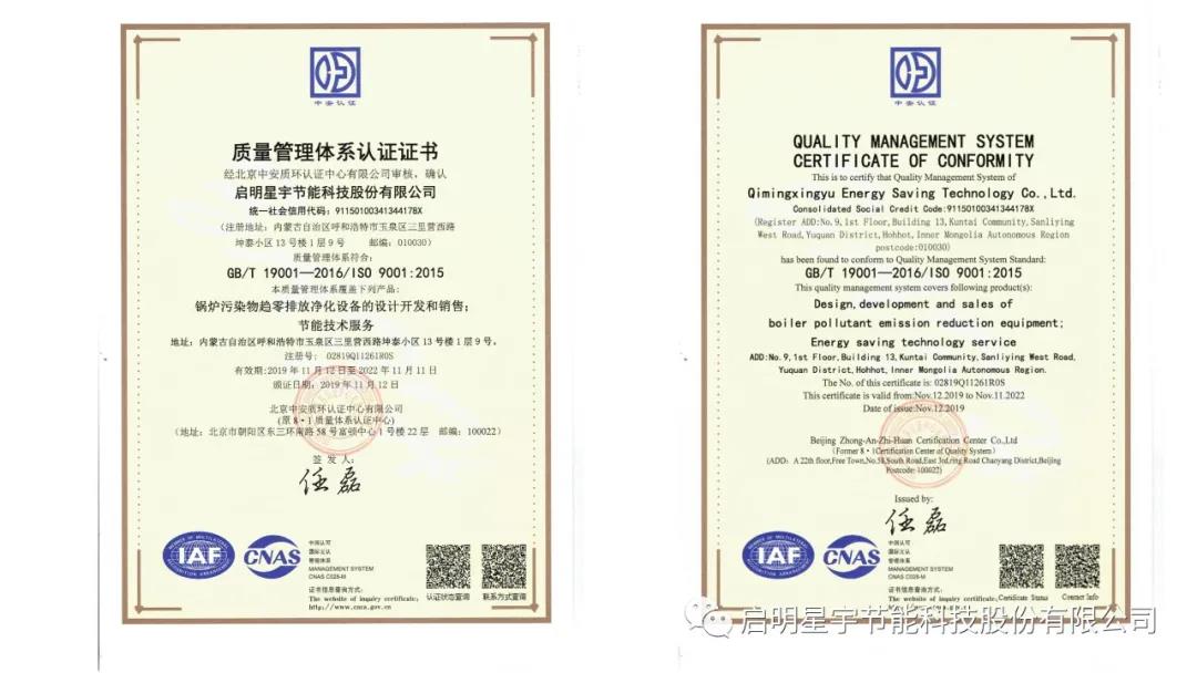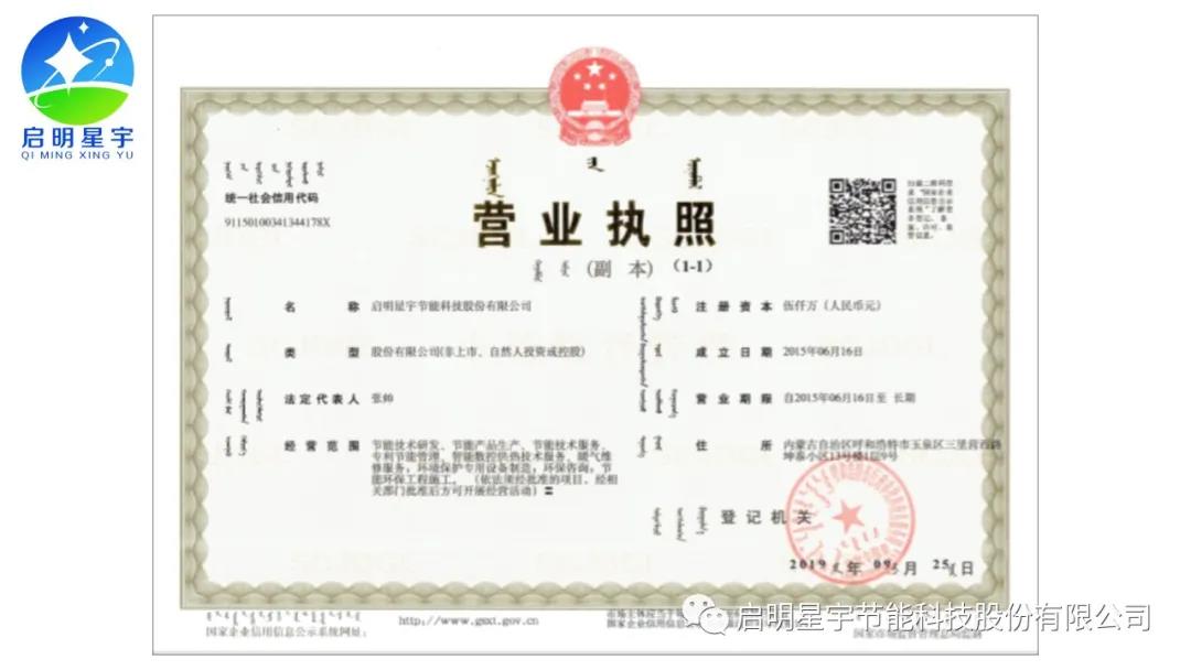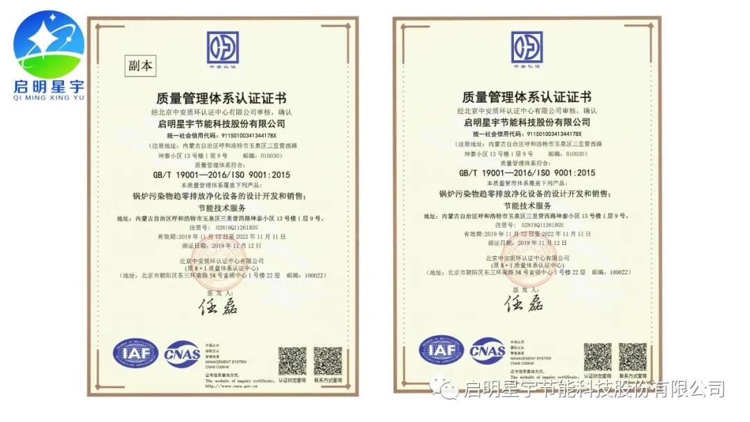 啟明星宇超低排放專利證書