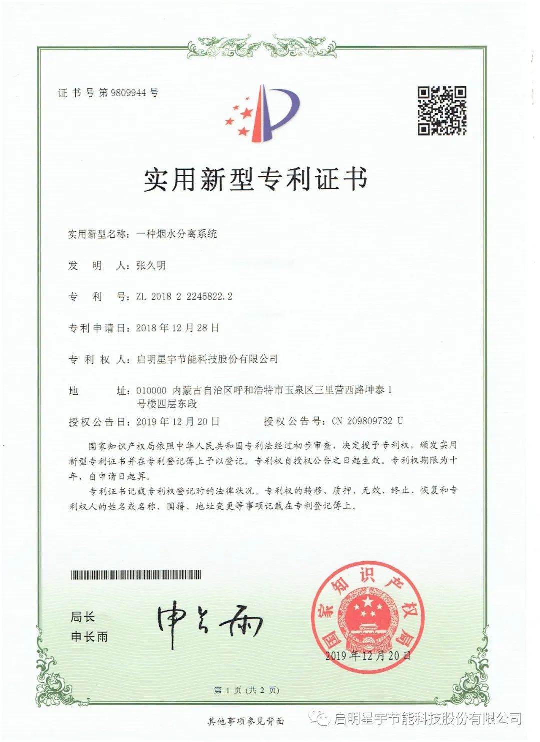 啟明星啟明星宇節能科技股份有限公司,2024年產品研發獲獎匯報