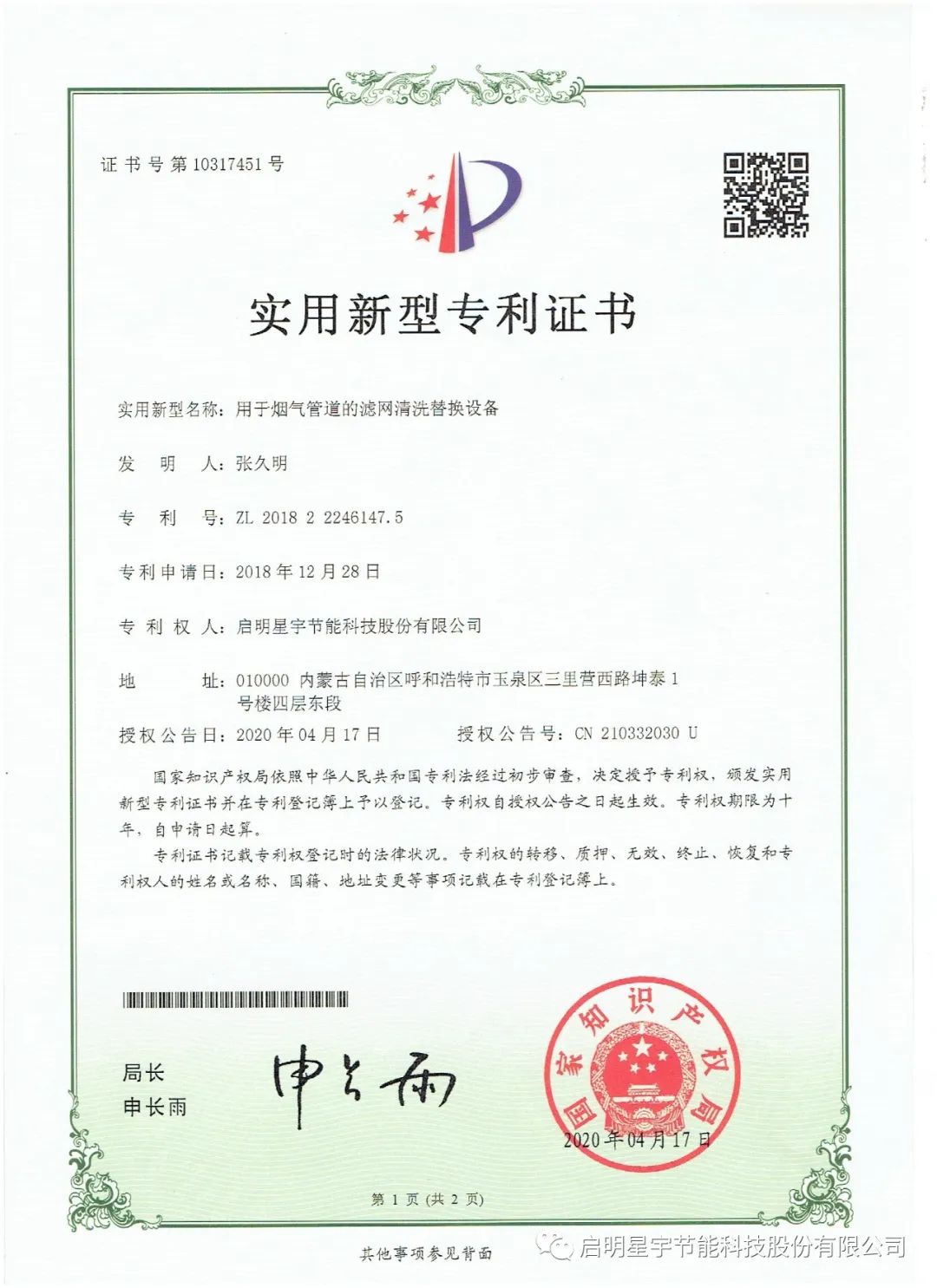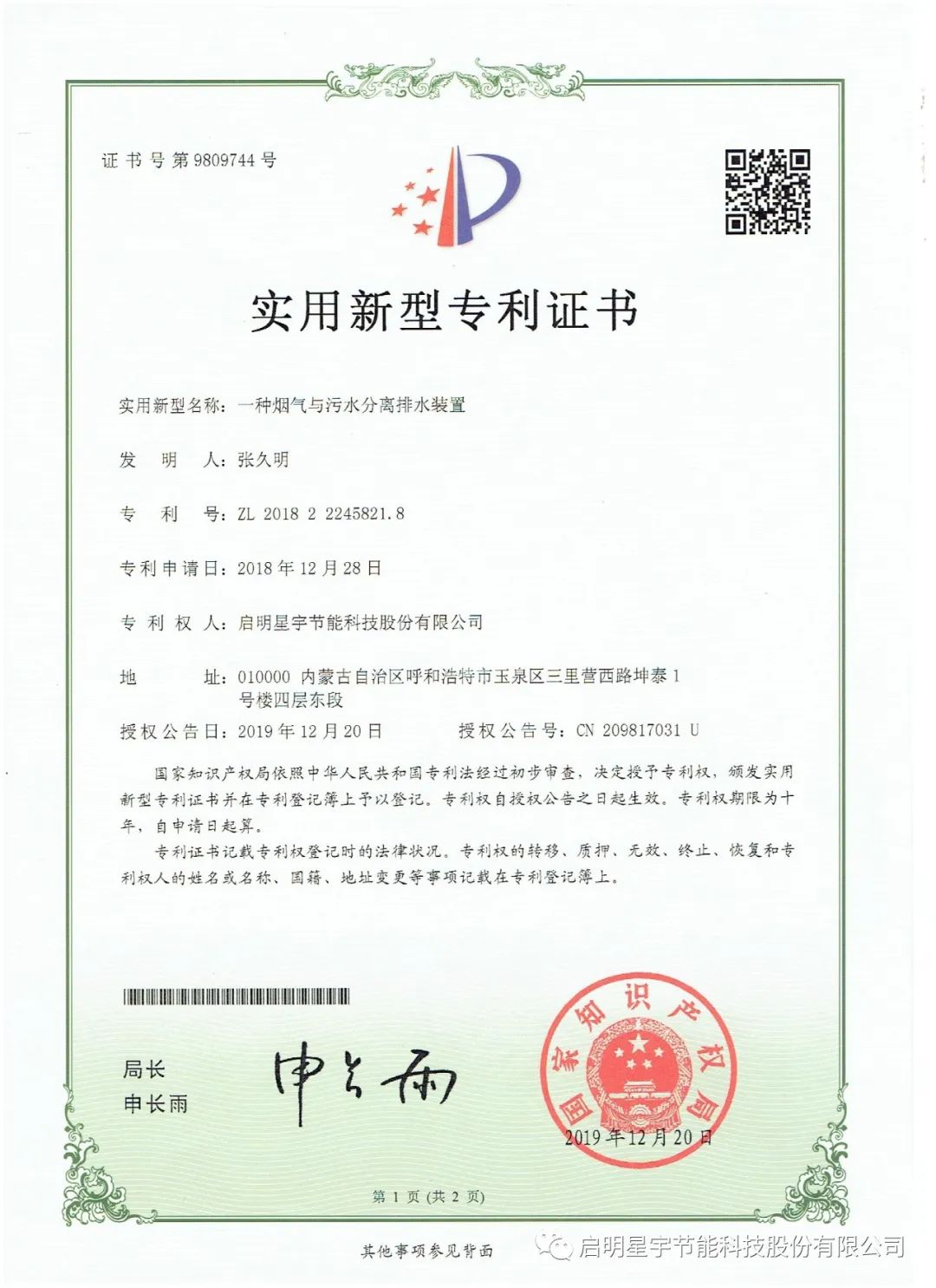 新年巨著,啟明星宇節能科技股份有限公司《工業廢氣零排放技術研究》科研論文在《中國科技人才》期刊成功發表